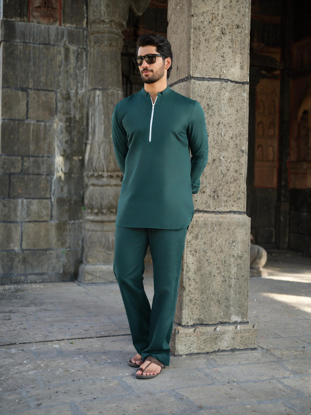 Men’s Cotton-Linen Co-ord Set – Tattva Forest (Dark Green)