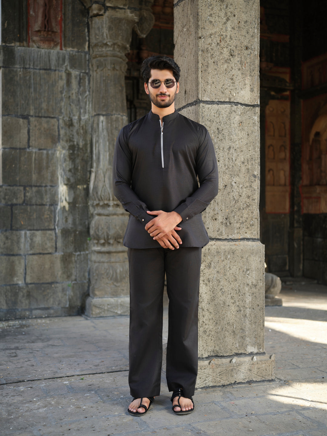 Men’s Cotton-Linen Co-ord Set – Tattva Space (Black)