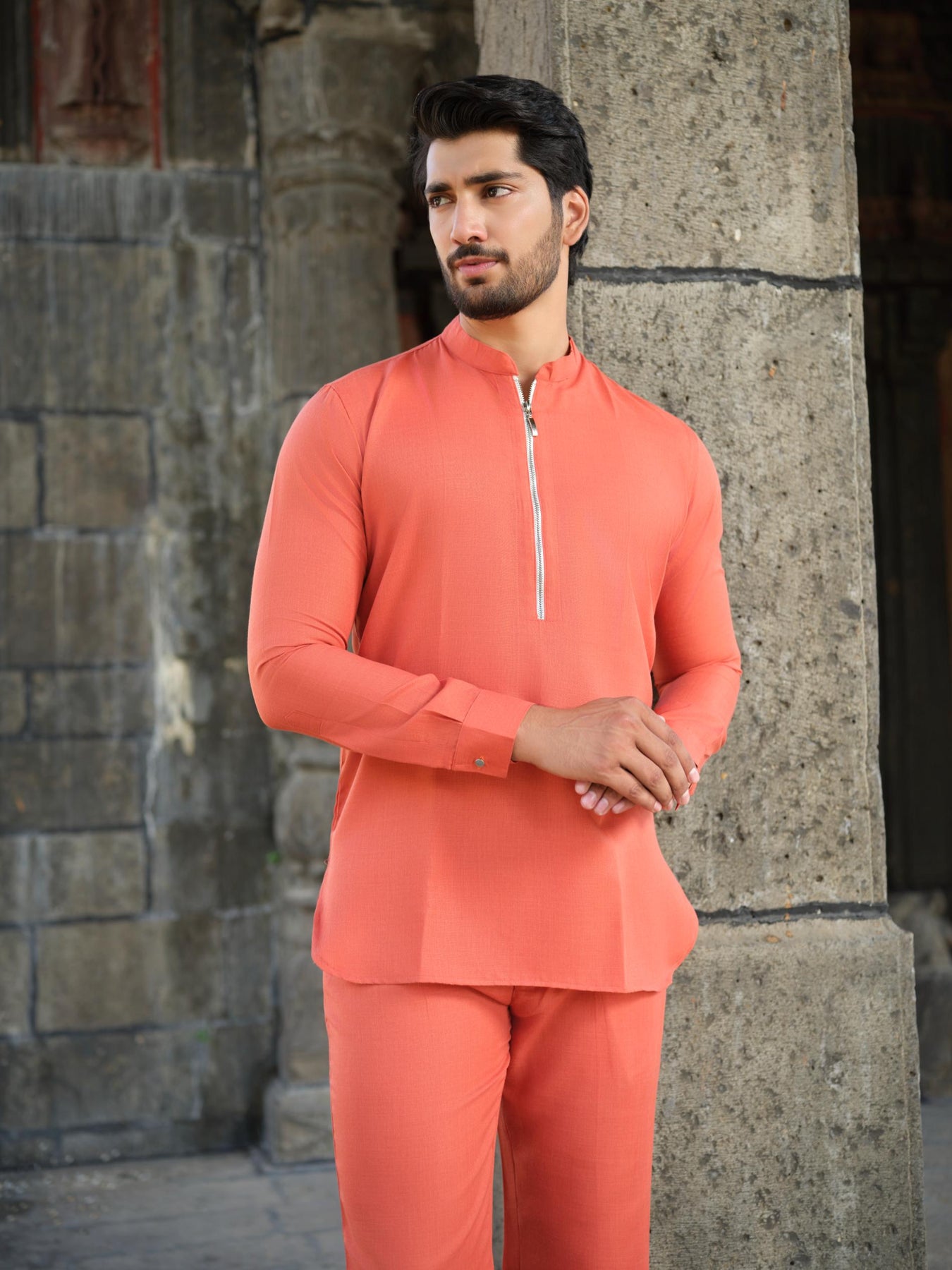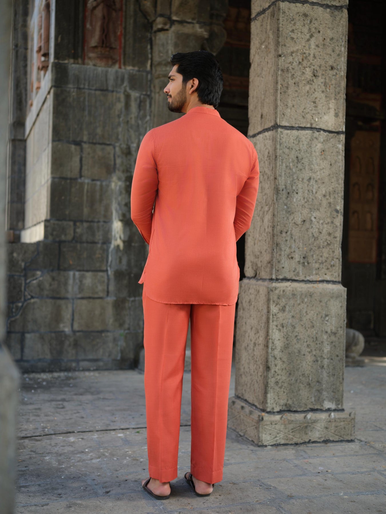 Men’s Cotton-Linen Co-ord Set – Tattva Fire (Rust Orange)