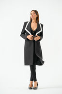 Stay stylish and cozy with our Rebeca Longline Coat. Made with luxurious banana crape fabric, this coat provides a modern look that will elevate any outfit. Enjoy the perfect balance of fashion and comfort.